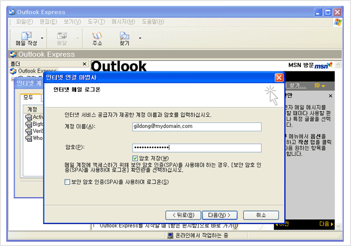 웹메일과 아웃룩 익스프레스 메일 동기화를 위한 설정